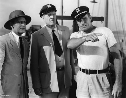 Above, left to right: Stanley Price, Gene Roth, and Buster Crabbe in Pirates of the High Seas (Columbia, 1950).