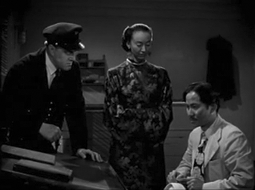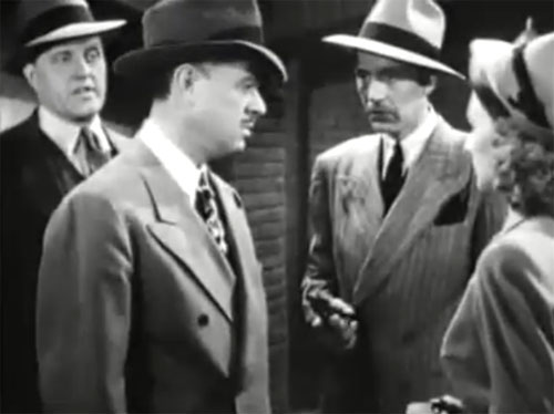 Above: Gene Roth provides Victoria Horne with ominous physical backup as she interrogates Keye Luke in Secret Agent X-9 (Universal, 1945).