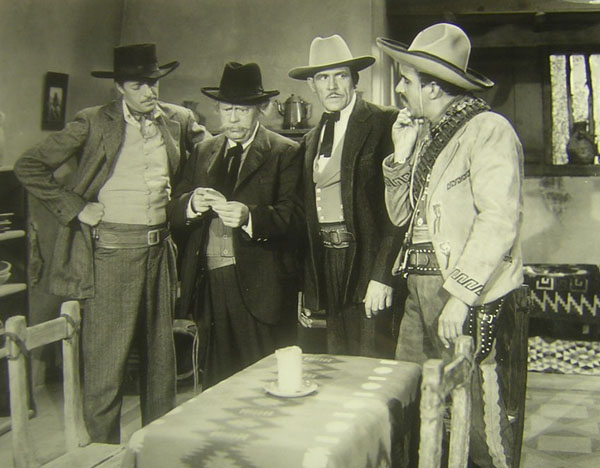 Above: Kenneth MacDonald (second from right) engages in some scheming in this lobby card for Black Arrow (Columbia, 1944). Bud Osborne is second from left.