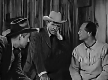 Above, left to right: Don C. Harvey, Kenneth MacDonald, and Terry Frost in Perils of the Wilderness (Columbia, 1956).