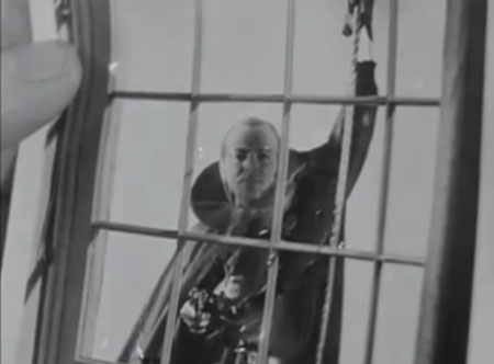 Above: Lyle Talbot’s Commissioner Gordon (that’s his thumb) holds up an incriminating photo of Leonard Penn in Wizard regalia (sans mask) in Batman and Robin.