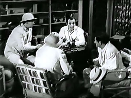 Above: Leonard Penn presides over a plotting session in Congo Bill (Columbia, 1948); his cohorts, left to right, are Anthony Warde, Rusty Wescoatt, and Fred Graham.