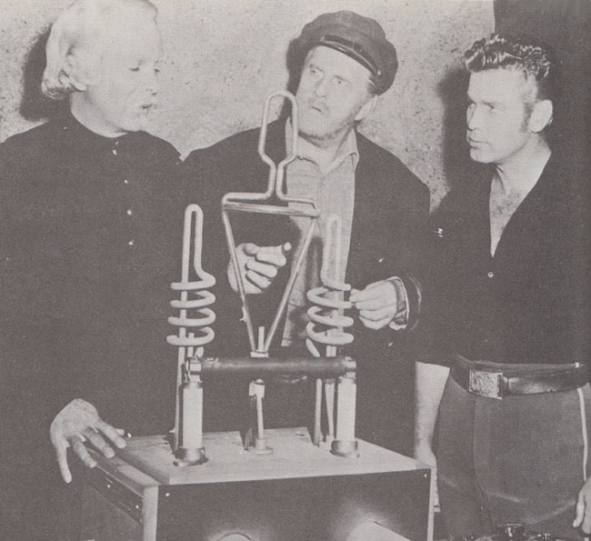 Above: Leonard Penn explains a scientific device to Gene Roth (center) and Richard Crane in Mysterious Island (Columbia, 1951).